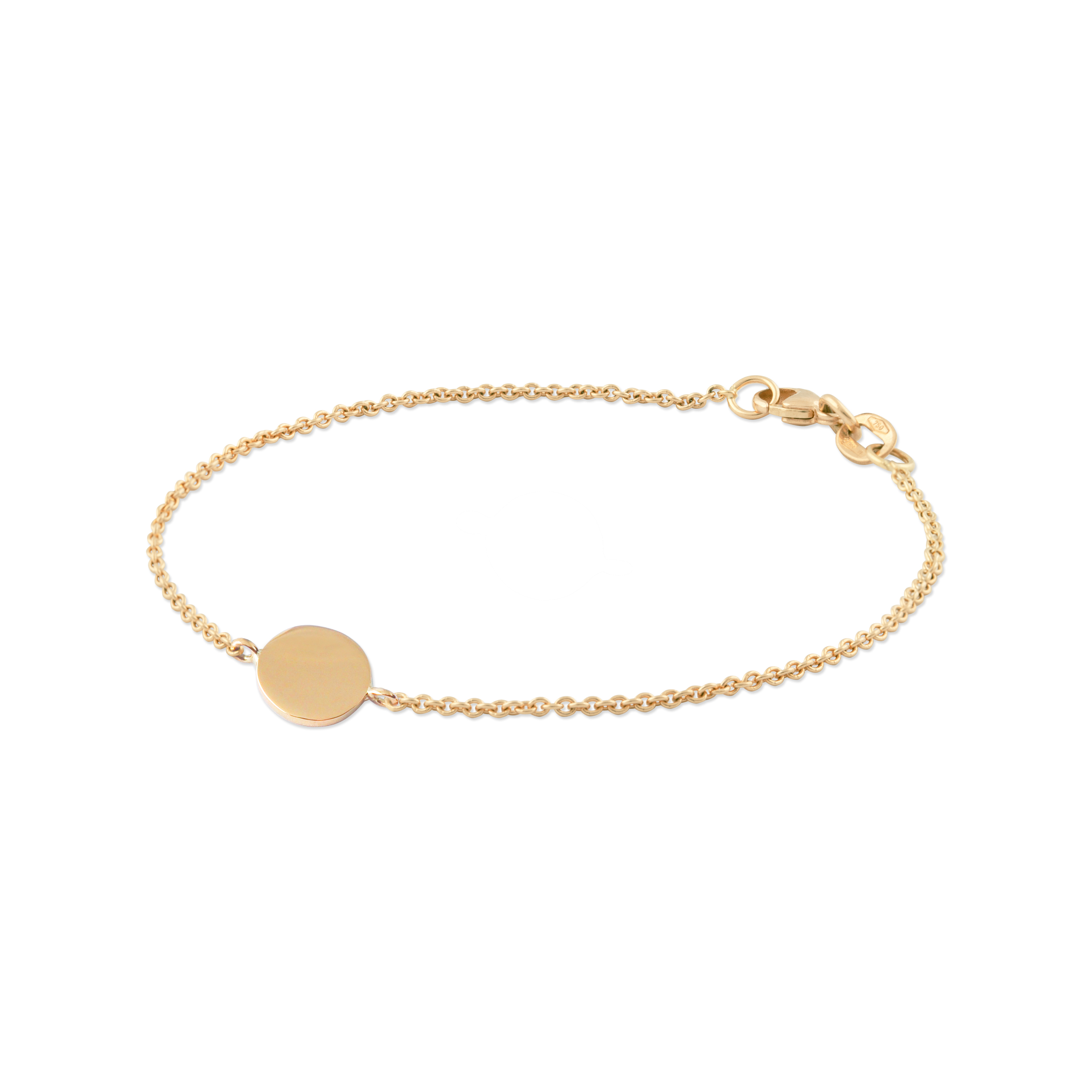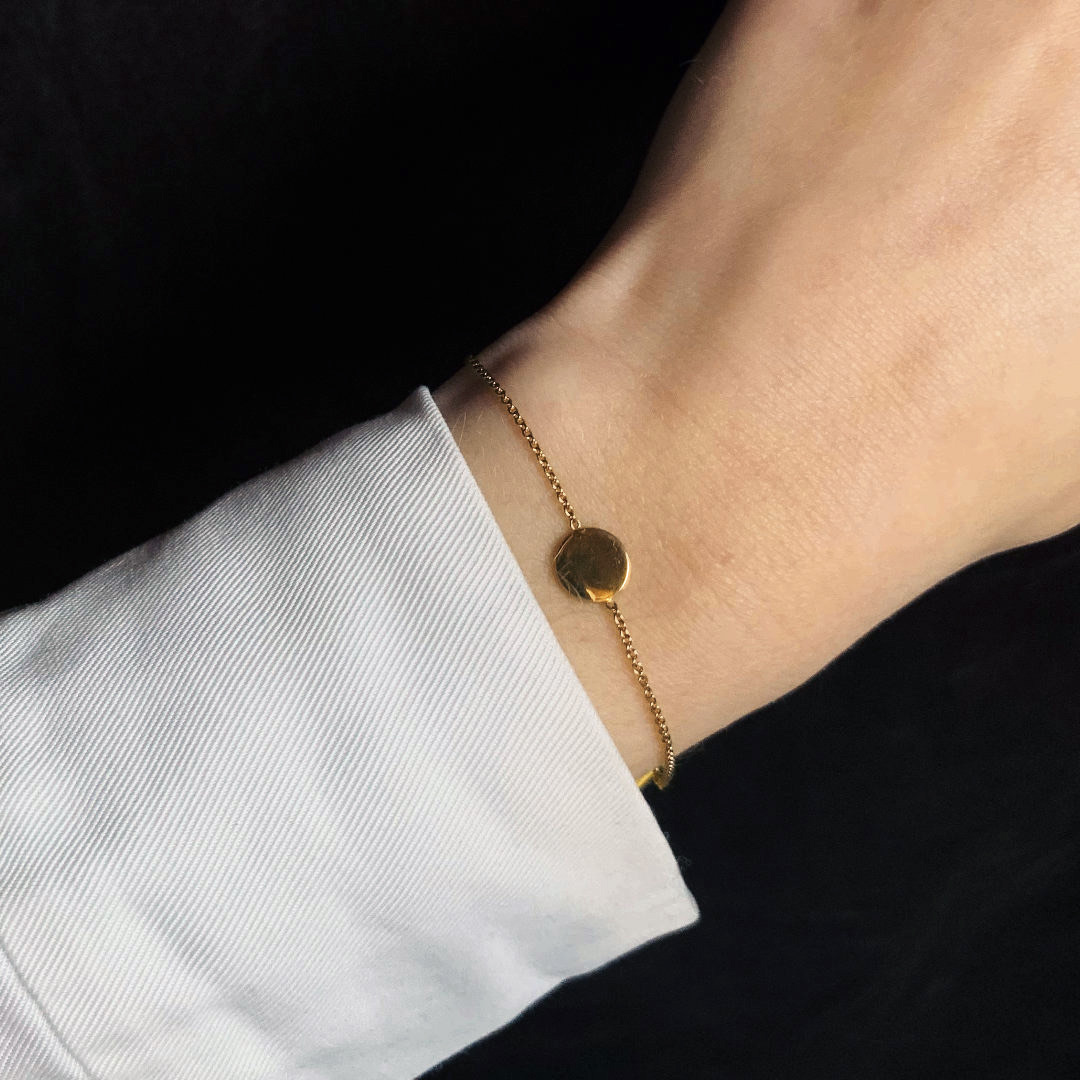 Handgjort armband i återvunnet 18k guld med platta, kan fås graverad. Mått/platta: Ø 8mm Längd: 17cm