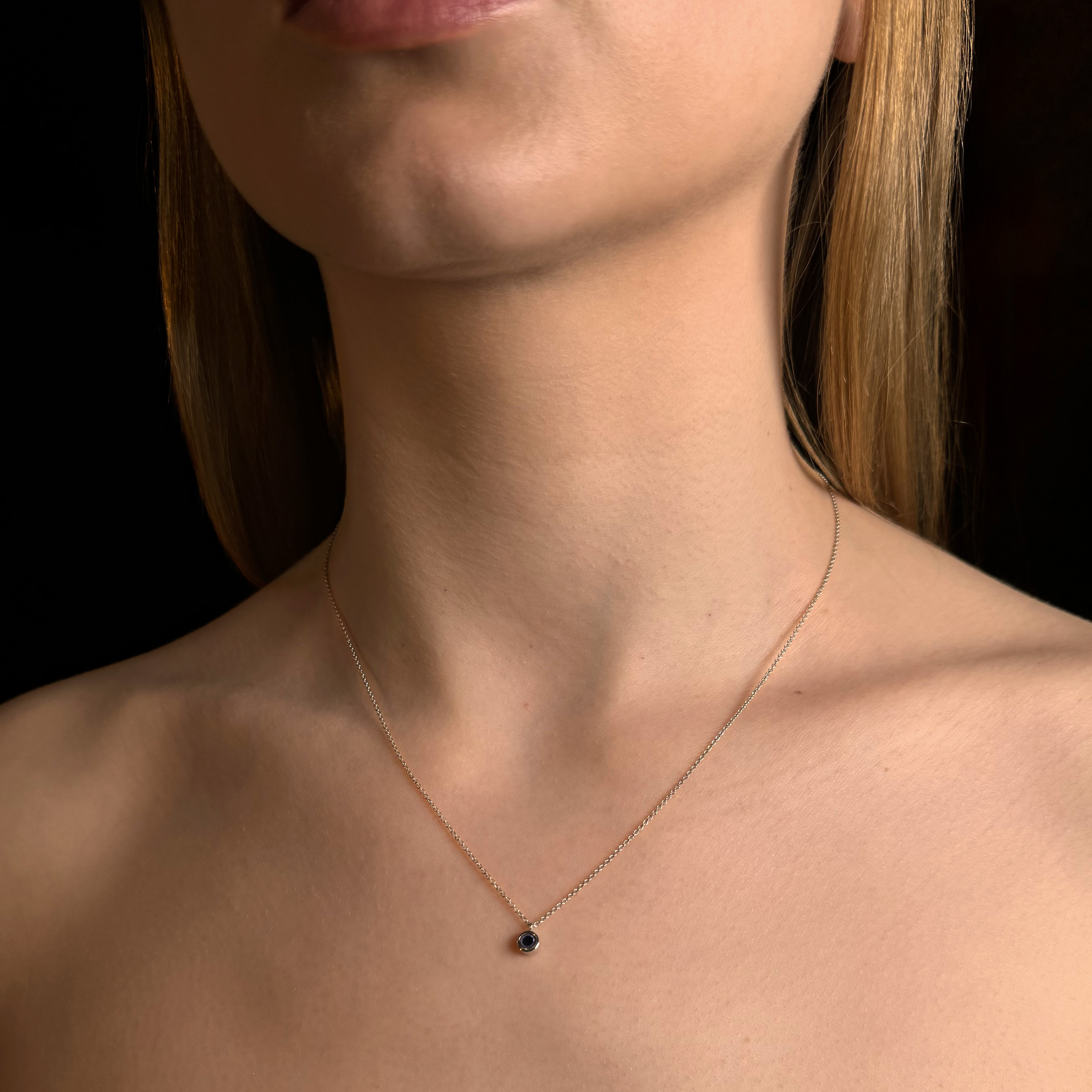 Handgjort enstenshalsband i återvunnet 18k vitguld med briljantslipad svart diamant.